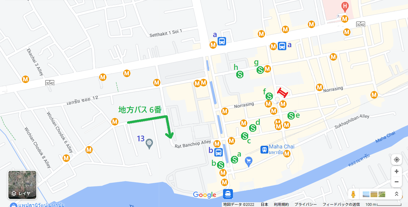 マハーチャイ バス停(a) 6、105(4-18)、120(4-21)番バス。